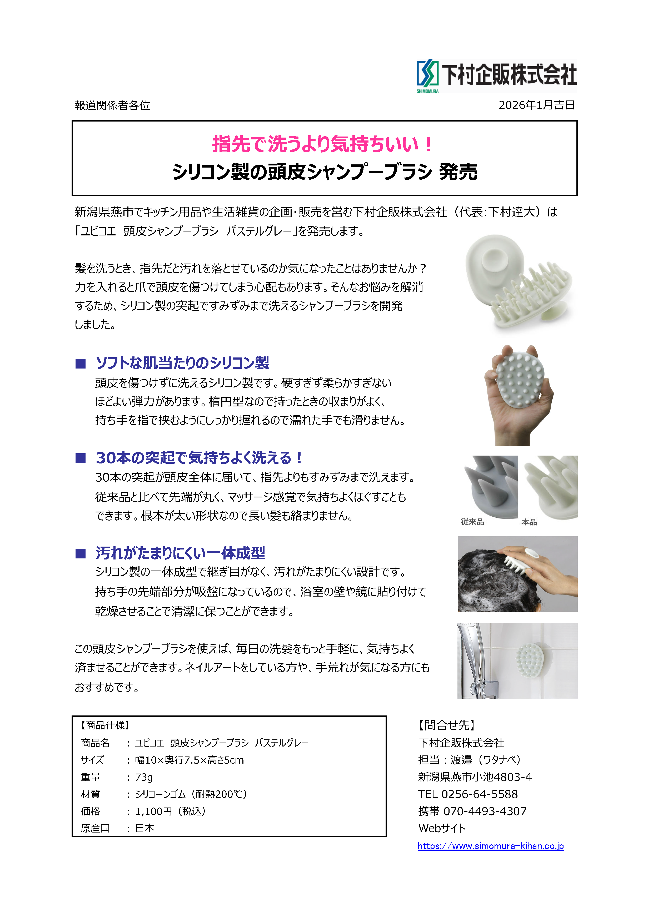 「ユビコエ 頭皮シャンプーブラシ パステルグレー」発売