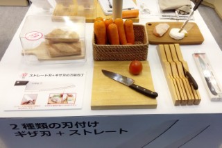 ストレート刃+ギザ刃の2種の刃が付いた作楽結シリーズの万能包丁